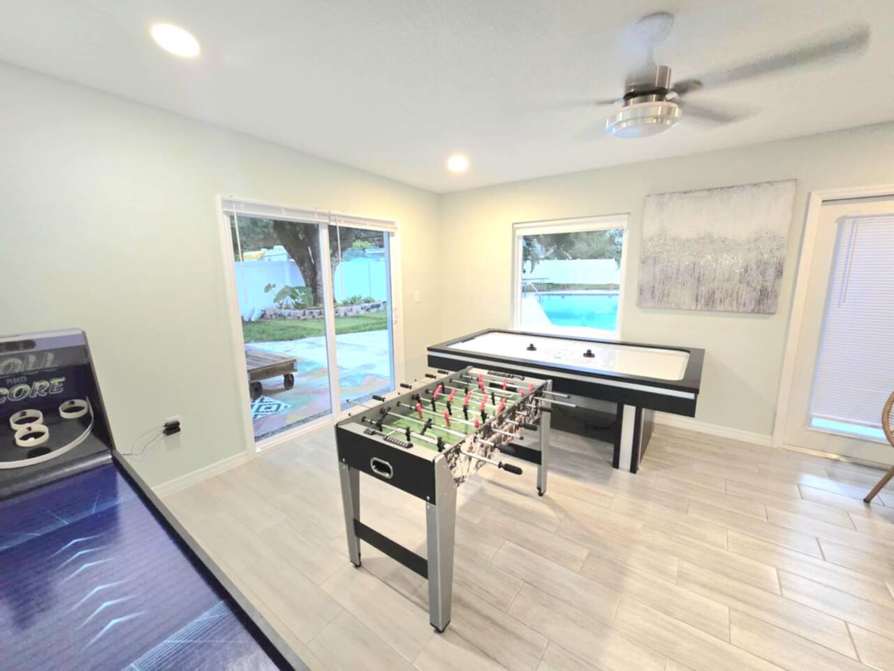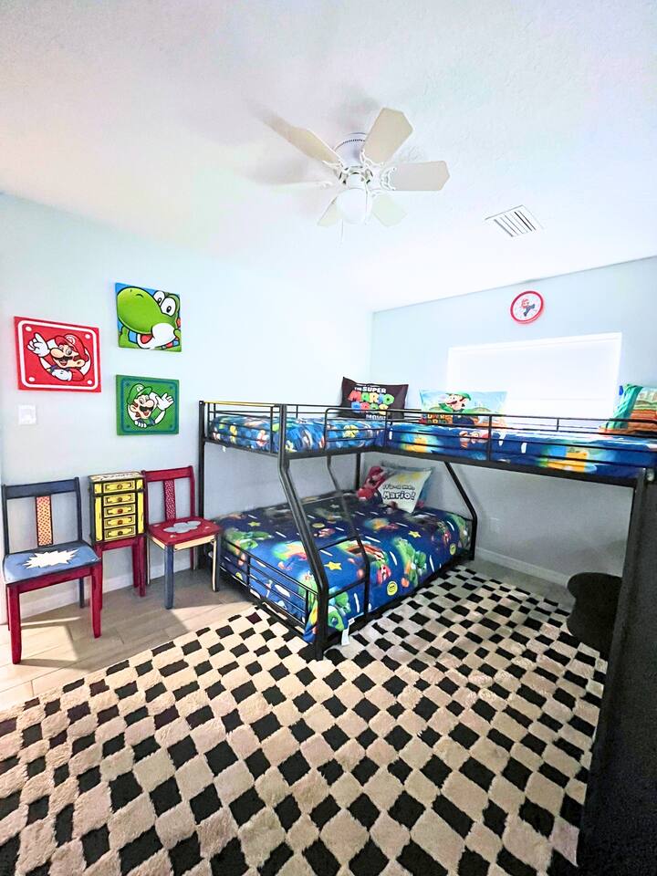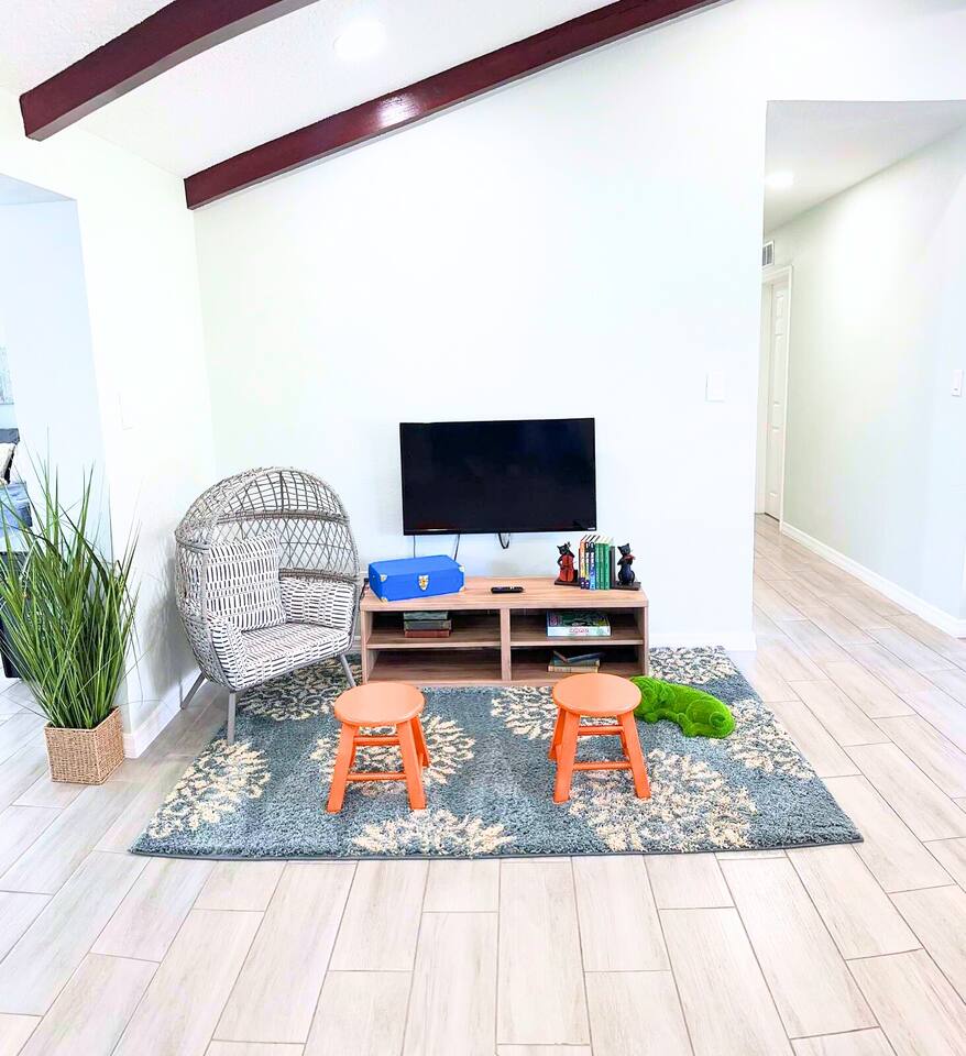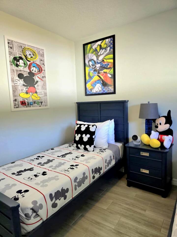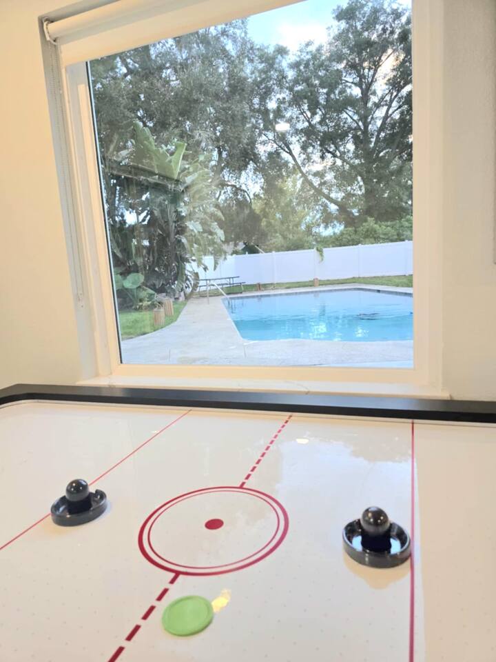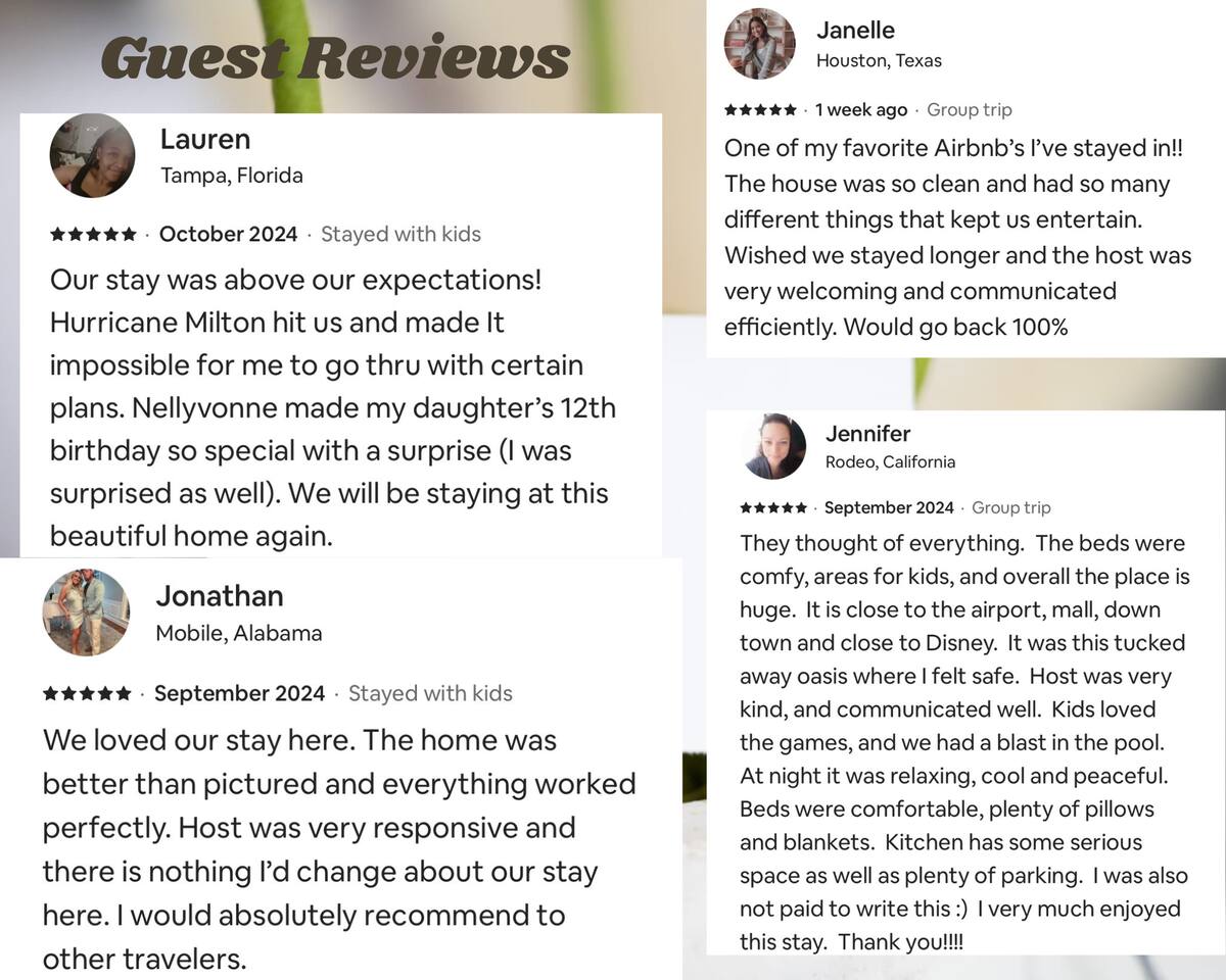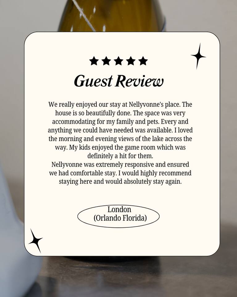 Bright, modern 4-bedroom, 2-bathroom home that comfortably sleeps 12. Located just minutes from Disney World, Universal Studios, SeaWorld, and all major attractions. Key Highlights: • Private heated pool for an additional fee • Spacious open-plan living room with plenty of natural light and a large smart TV • Fully equipped kitchen (dishwasher, microwave, coffee maker, toaster, blender, basic pantry items) • Dining table seating 8–10 Bedroom Breakdown: • Master: King bed, en-suite bathroom • Bedroom 2: 1 Full + 2 Twin beds (perfect for kids) • Bedroom 3: Queen bed • Bedroom 4: 2 Twin beds •Living room: Pullout couch Fun & Convenience: • Game room with air hockey, Pac-Man arcade, foosball, and skee-ball • Dedicated kids’ mini living room with TV and soft seating • High chair, Pack ’n Play, Umbrella strollers and toys provided • Two quiet workspaces with desks • Free high-speed Wi-Fi, washer/dryer, and complimentary toiletries Outdoor: • Large heated pool and outdoor seating • Gas BBQ grill available Quiet, family-friendly neighborhood with easy access to everything Orlando has to offer—no resort fees, no parking hassles, just space to relax and make memories. 📌Note: There is a separate room with a private entrance at the back of the home, occupied by an individual. This space is fully independent and does not share access to the main house or pool, ensuring your privacy and enjoyment. 🏊♂️ Pool Heating: Pool heating is available upon request for an additional fee of $100 per night (minimum of 2 nights). For 1-night stays, the fee is $150. To maintain consistent water temperature and manage high operational and maintenance costs, pool heating must be scheduled for the entire duration of your stay (partial-stay heating is not available). Please confirm at least 24–48 hours before check-in if you’d like the pool heated, as we need advance notice to schedule and ensure it’s ready for your arrival. Payment will be arranged once confirmed. 🔹 Pool & Yard Maintenance Regular pool and maintenance takes place Tuesdays (Yard) and Wednesdays (Pool), depending on the weather. Our team works quickly to ensure minimal disruption to your stay. 🔥 Grill Usage A grill is available for $75 per stay – perfect for poolside BBQs and outdoor dining! Guests are responsible for its use and will be held liable for any damages or accidents. Please enjoy responsibly. 🐾 Pet Policy To avoid a separate pet fee invoice, please include your pet in the reservation. Let’s keep it simple—no Sneaky Pets! 🔥 Fireplace Instructions To use the fireplace, pour 91% Isopropyl alcohol into the designated area and use the lighter located in the utensil drawer.