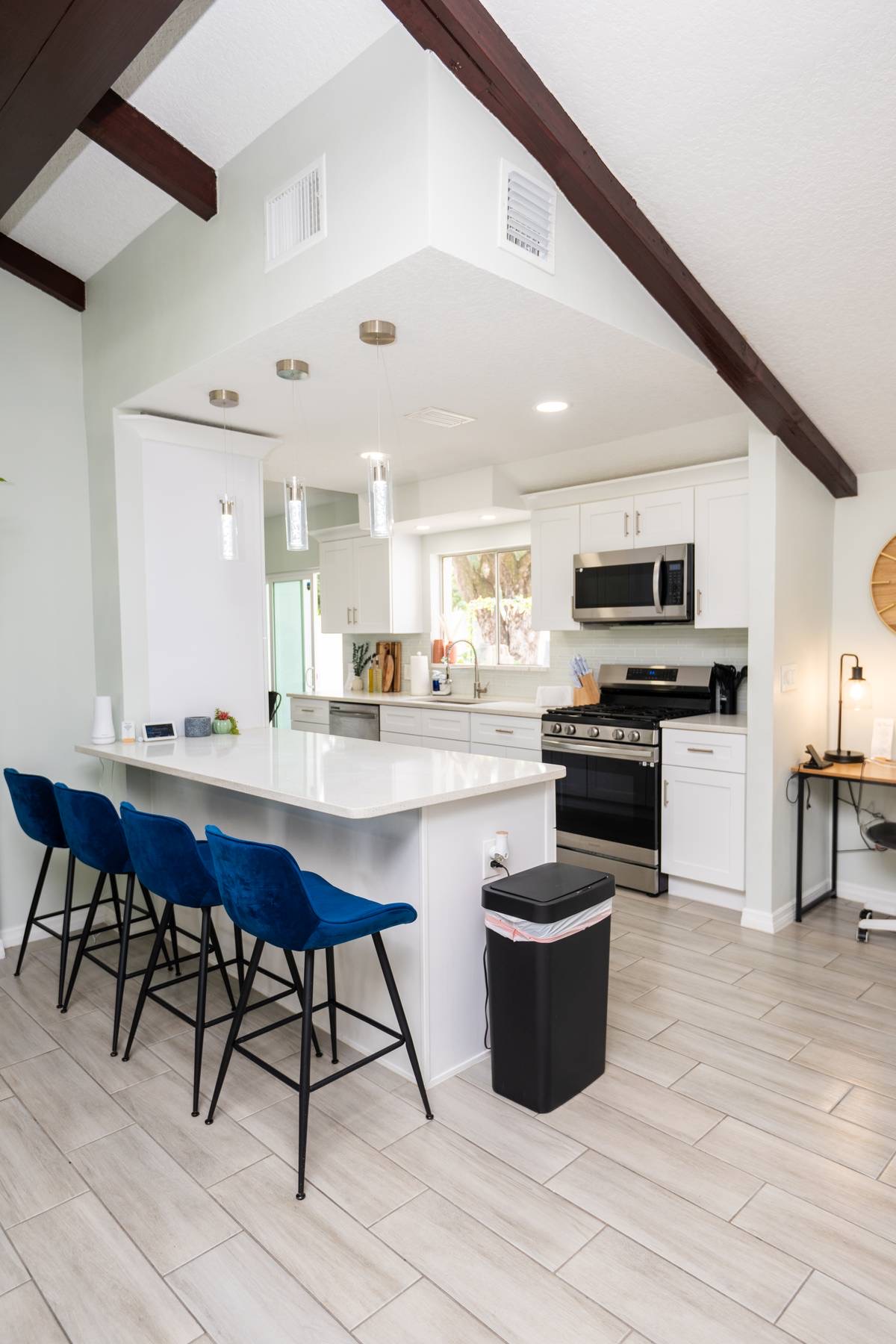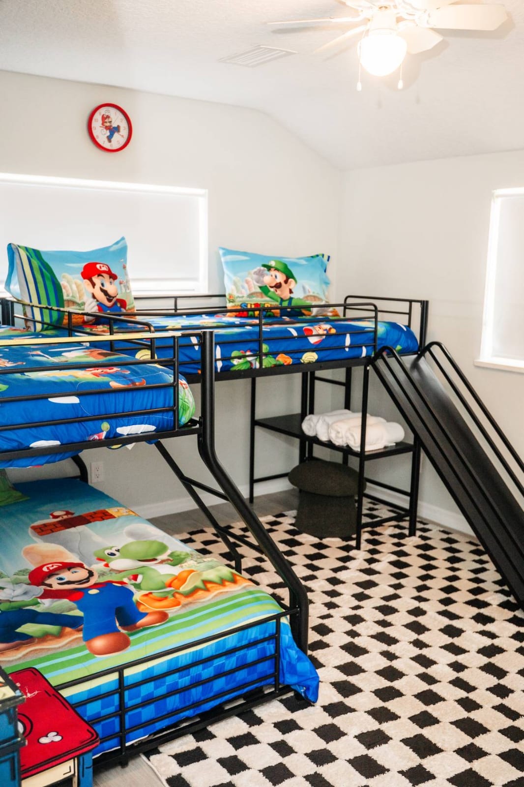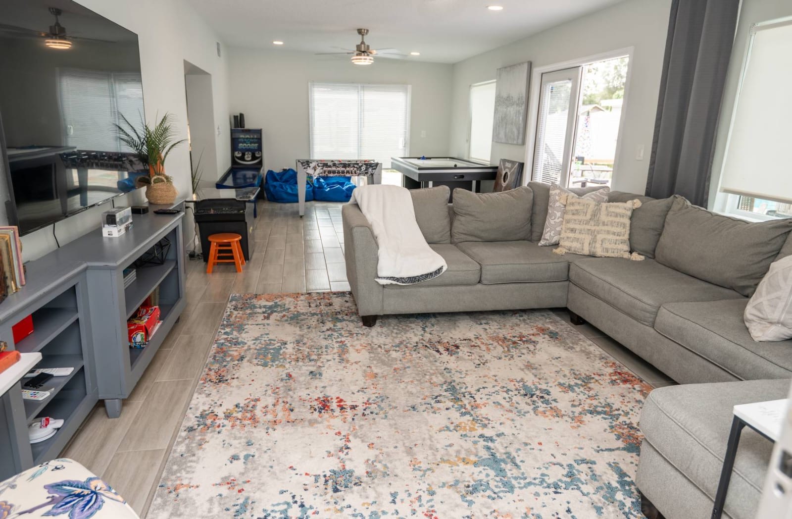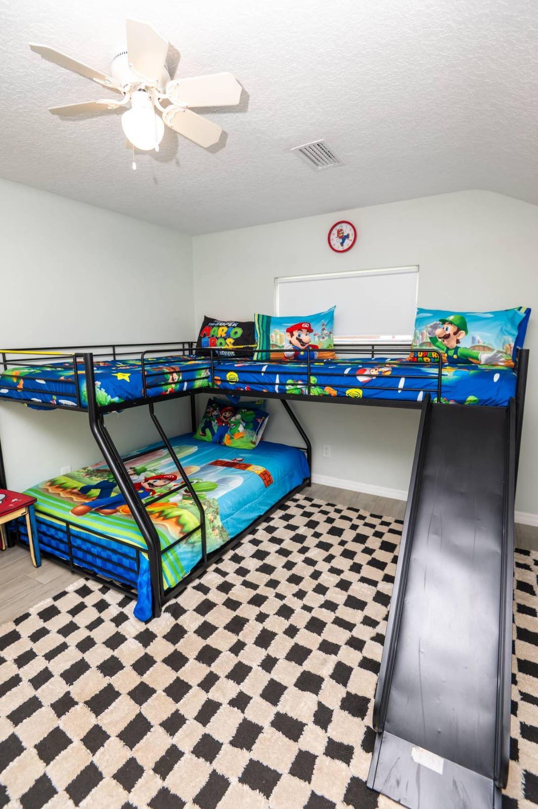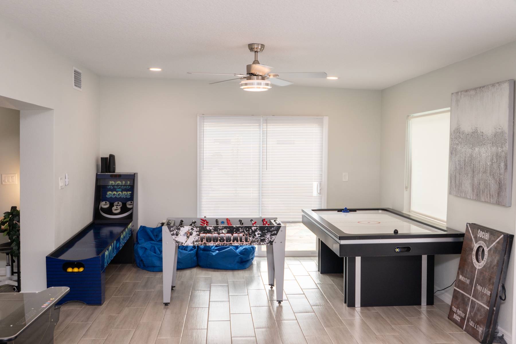 Bright, modern 4-bedroom, 2-bathroom home that comfortably sleeps 12. Located just minutes from Disney World, Universal Studios, SeaWorld, and all major attractions. Key Highlights: • Private heated pool for an additional fee • Spacious open-plan living room with plenty of natural light and a large smart TV • Fully equipped kitchen (dishwasher, microwave, coffee maker, toaster, blender, basic pantry items) • Dining table seating 8–10 Bedroom Breakdown: • Master: King bed, en-suite bathroom • Bedroom 2: 1 Full + 2 Twin beds (perfect for kids) • Bedroom 3: Queen bed • Bedroom 4: 2 Twin beds •Living room: Pullout couch Fun & Convenience: • Game room with air hockey, Pac-Man arcade, foosball, and skee-ball • Dedicated kids’ mini living room with TV and soft seating • High chair, Pack ’n Play, Umbrella strollers and toys provided • Two quiet workspaces with desks • Free high-speed Wi-Fi, washer/dryer, and complimentary toiletries Outdoor: • Large heated pool and outdoor seating • Gas BBQ grill available Quiet, family-friendly neighborhood with easy access to everything Orlando has to offer—no resort fees, no parking hassles, just space to relax and make memories. 📌Note: There is a separate room with a private entrance at the back of the home, occupied by an individual. This space is fully independent and does not share access to the main house or pool, ensuring your privacy and enjoyment. 🏊♂️ Pool Heating: Pool heating is available upon request for an additional fee of $100 per night (minimum of 2 nights). For 1-night stays, the fee is $150. To maintain consistent water temperature and manage high operational and maintenance costs, pool heating must be scheduled for the entire duration of your stay (partial-stay heating is not available). Please confirm at least 24–48 hours before check-in if you’d like the pool heated, as we need advance notice to schedule and ensure it’s ready for your arrival. Payment will be arranged once confirmed. 🔹 Pool & Yard Maintenance Regular pool and maintenance takes place Tuesdays (Yard) and Wednesdays (Pool), depending on the weather. Our team works quickly to ensure minimal disruption to your stay. 🔥 Grill Usage A grill is available for $75 per stay – perfect for poolside BBQs and outdoor dining! Guests are responsible for its use and will be held liable for any damages or accidents. Please enjoy responsibly. 🐾 Pet Policy To avoid a separate pet fee invoice, please include your pet in the reservation. Let’s keep it simple—no Sneaky Pets! 🔥 Fireplace Instructions To use the fireplace, pour 91% Isopropyl alcohol into the designated area and use the lighter located in the utensil drawer.